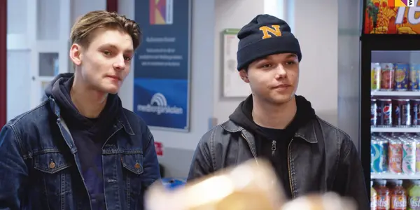 Emrik och Joshua hälsar på i caféet och pratar med Sebastian om hur det är att jobba på Kulturama.